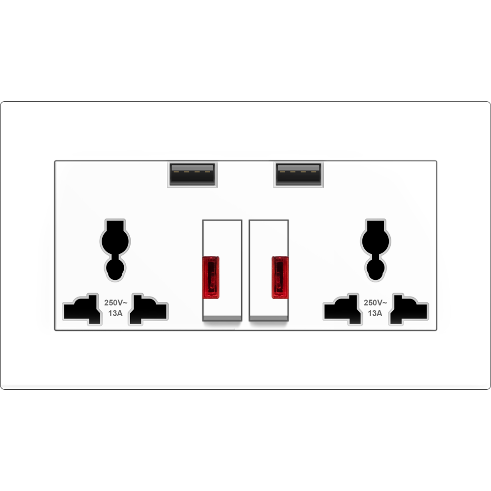 B1000 Twin Universal Socket Outlet w/ Switch & Neon + 3.1A USB Charger