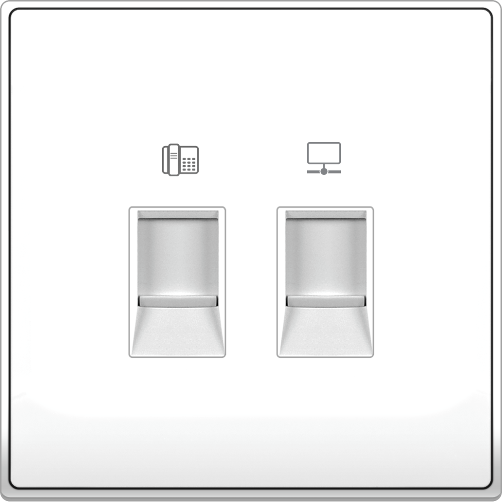 | B5032 TO/CAT6AS | Telephone outlet RJ11 Cat3 4 contact + Cat6A STP (Shielded Twisted Pair) data outlet |