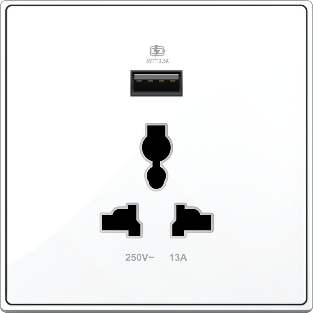B5000S Universal Socket Outlet w/ 2,5A USB Charger