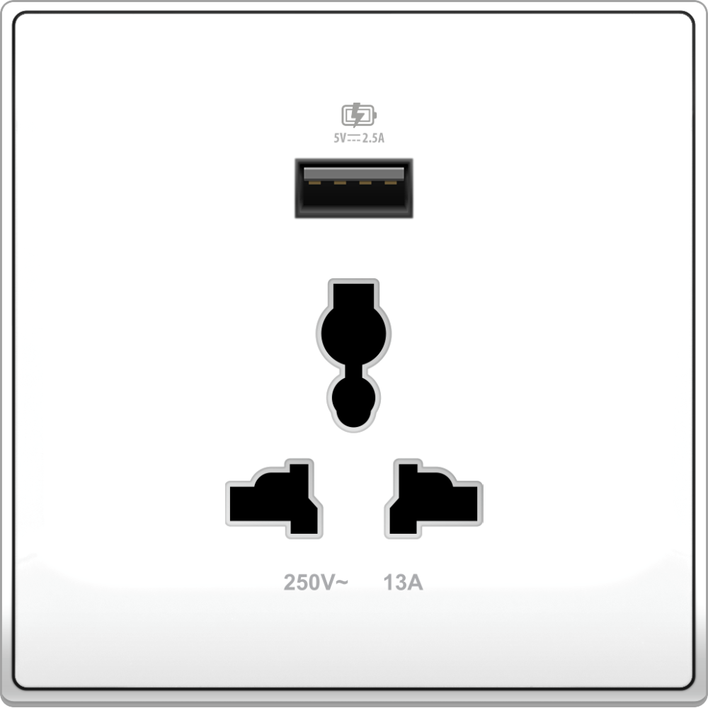 B5000 Universal Socket Outlet w/ 2.5A USB Charger